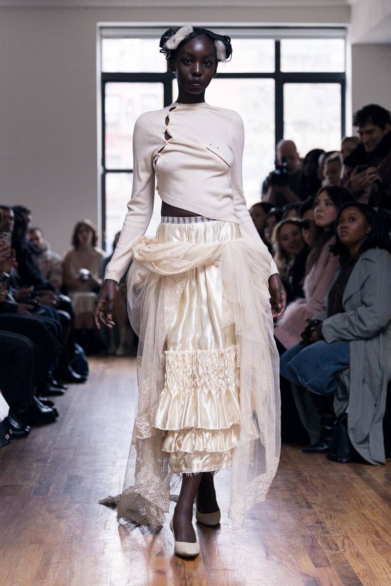 На подиумах — чистая драма (в хорошем смысле): шлейфы, которые хочется «выгуливать» даже до кофейни, турнюры, добавляющие силуэту характер, кружевные манжеты — как будто ты только что отложил томик стихов. И вот он, главный вайб — poetcore. Не идеальный, не вылизанный, а живой: чуть растрёпанный, чувственный, с настроением «я сейчас либо влюблюсь, либо напишу об этом». Отдельный флекс — шейные платки в духе Beau Brummell, но через призму Dior Men: чуть денди, чуть рок-звезда, чуть интеллектуал, который слишком много чувствует. Короче, это тот редкий тренд, где можно не притворяться — а просто быть немного драматичнее, чем обычно.