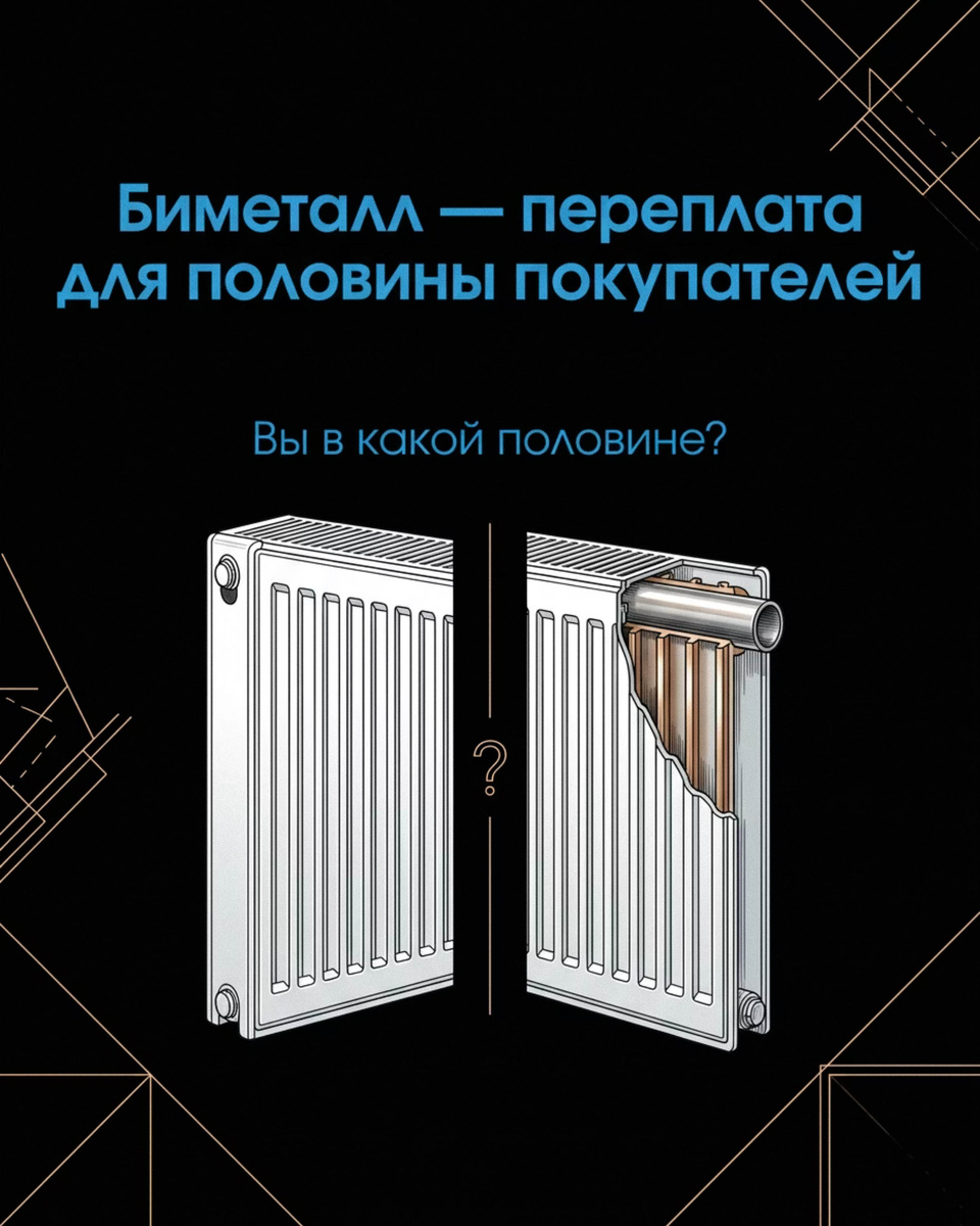 Биметаллический радиатор - это алюминиевый корпус с внутренней стальной трубкой. Выдерживает высокое давление, служит долго. Но это не значит, что он подходит всем. Разберём по ситуациям. Квартира с центральным отоплением. Здесь давление в системе высокое, могут быть гидроудары. Биметалл - правильный выбор. Можно также смотреть на стальные дизайнерские радиаторы отдельных производителей, которые держат такие нагрузки. Частный дом с собственным котлом. Давление стабильное и невысокое. Биметалл здесь избыточен. Берите алюминий - он дешевле, а теплоотдача у него лучше. Либо смотрите стальные дизайнерские радиаторы: разные формы, размеры, цвета - красивое решение для тех, кому важен внешний вид. Но дороже. Ещё один момент, который часто упускают. Из-за стальной трубки внутри биметалл передаёт тепло чуть хуже, чем чистый алюминий. Секций может потребоваться больше - учитывайте это при расчёте. Коротко: алюминий - для частного дома, биметалл - для квартиры с центральным отоплением. Всё остал