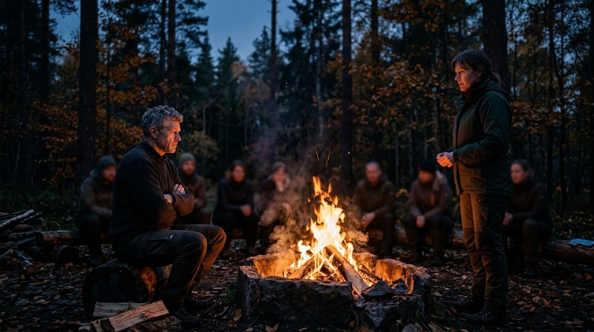 Я смотрела на него. Мужчина ближе к пятидесяти, бывший лесник, вдовец уже три года, с дочерью, которая распечатывает ему тренинги и кладёт на стол. Приехал в лес, который знает лучше меня. Сидел у костра и честно сказал, что скучает по жене.