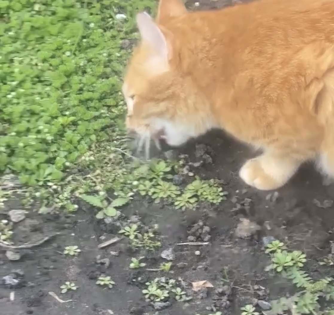 Вот ни за что не выйдет на улицу, пока не получит еду, причём сухой корм всегда стоит, он его ест с прогулки днём; вчера вот после вкусной мышки перекусил сухим кормом и лёг днём спать.