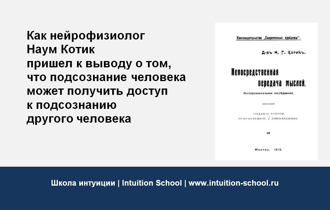 Друзья, в этой статье речь пойдет об экспериментах Наума Котика, подтверждающих то, что подсознание одного человека может получить доступ к подсознанию другого человека.