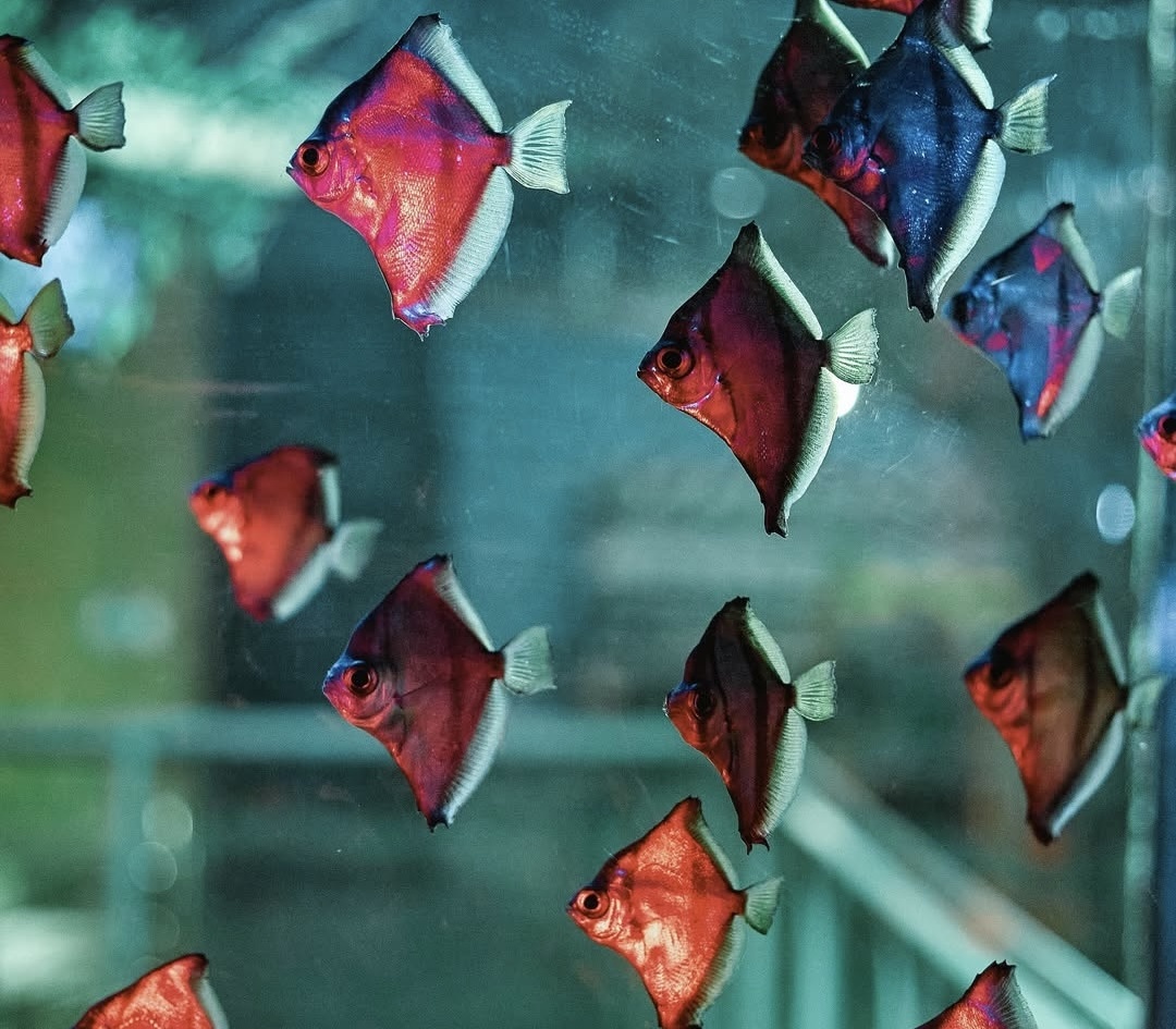 Взгляните на эту серебристую карусель! Стайка монодактилусов, или как их поэтично называют — рыб-ласточек, рассекает толщу воды с грацией отточенных лезвий. Их чешуя, словно жидкая ртуть или начищенное фамильное серебро, вспыхивает бликами при каждом синхронном развороте. Эффектное зрелище, от которого невозможно оторвать взгляд, не так ли? 🐠 В солидных ихтиологических фолиантах часто можно встретить утверждение, что в такой стае царит строгая иерархия: якобы «самая крупная и решительная особь берет бразды правления на себя, и это становится особенно очевидно во время трапезы, когда вожак первым бросается на корм». Звучит логично и по-армейски строго. Но у нас в Океанариуме свои счёты с теорией. Мы, вооружившись терпением и блокнотами, устроили настоящую слежку за серебряным племенем. Высматривали того самого «генерала»: кто первый делает рывок, кто задает траекторию, кто оттирает плечом (точнее, плавником) соседей. И знаете что? Фиаско.