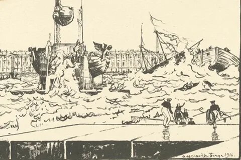 Вода пришла к нам сама, ибо в Мойке она, как и во всех каналах и реках обратилась вспять. Поверишь ли ты, что ворота в подворотне дома вынесло единой волной и ударило о стену, разметав в куски? Обломки вместе с дровами, запасёнными на зиму для хозяев и квартирантов воронкой вращались в мутной воде, которая всё прибывала. Грохот стоял невообразимый, от магазина "Константинопольская контора", что расположился на первом этаже дома с выходом на Миллионную улицу 26, не осталось практически ничего - волны врывались в окна и разбитые стёкла не могли удержать их натиска. Всё, что мы могли сделать с Марьей Яковлевной - это молиться и молитвой поддерживать друг друга, но эта женщина поразила меня и сейчас - она велела мне спасать то, что ещё можно спасти - будущее людей, оставшихся без крова.