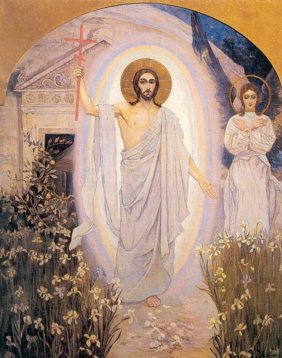 П. Чехов говорил, что в человеке должно быть всё прекрасно: и лицо, и одежда, и душа, и мысли. Однако, при всём старании нельзя сделать лицо прекрасным. Можно подкрасить, загримировать, но это будет подделка, а любую подделку нельзя называть прекрасной. Можно купить прекрасную одежду, но она не даст человеку прекрасных: лица, души, мыслей. Прекрасную душу и прекрасные мысли может иметь тот, у кого прекрасное сердце, обновлённый дух, кто живёт новой жизнью, в ком «возсиявает Солнце» Пасхального утра. Архимандрит Елеазар (Иванов) #АрхимандритЕлеазарИванов "Воскресение Христово", Нестеров Михаил Васильевич, 1890 г.