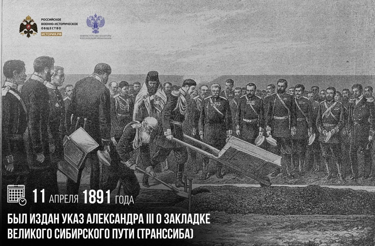 11 апреля 1891 года был издан указ Александра III о закладке Великого сибирского пути (Транссиба)