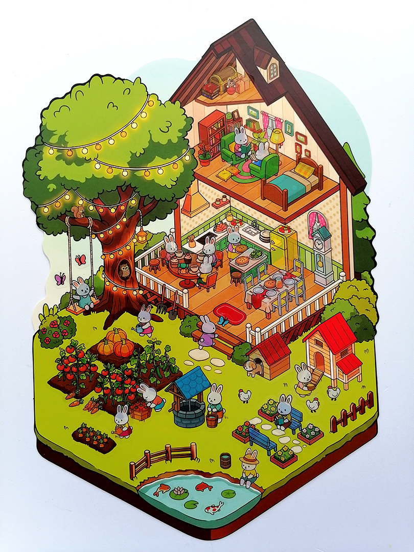 Увидела в фикспрайсе румбоксы, клеевые. Они состоят из картонной подложки, и нескольких листов стикеров. По образцу нужно воссоздать комнату или парк, наклеивая детали в нужном порядке. Взяла одну, посмотреть, что это такое, и как прониклась. Потом заказала более сложные, со множеством деталей и лучшего качества. Эти мне тоже понравились, купила их все, если не ошибаюсь. В местных магазинах, по крайней мере, я других не видела. Но есть вопросики, - ферма и кондитерская со стикерами - неполный комплект. В обеих нет нужного, но есть ненужное - в ферме не хватает двух стульев у стола, но есть лишние тарелки, одну их которых я поставила на холодильник, а в кондитерской вообще имеется лишнее окно, но нет много блюд для центрального стенда. Я, конечно, выкрутилась, приклеила из других, сделала свой вариант, но осадочек остался. Для того, чтобы ознакомиться с этим видом румбоксов, наборы из фикспрайса вполне подойдут - они интересные по тематике, очень недорогие, и даже недостаток стикеров в