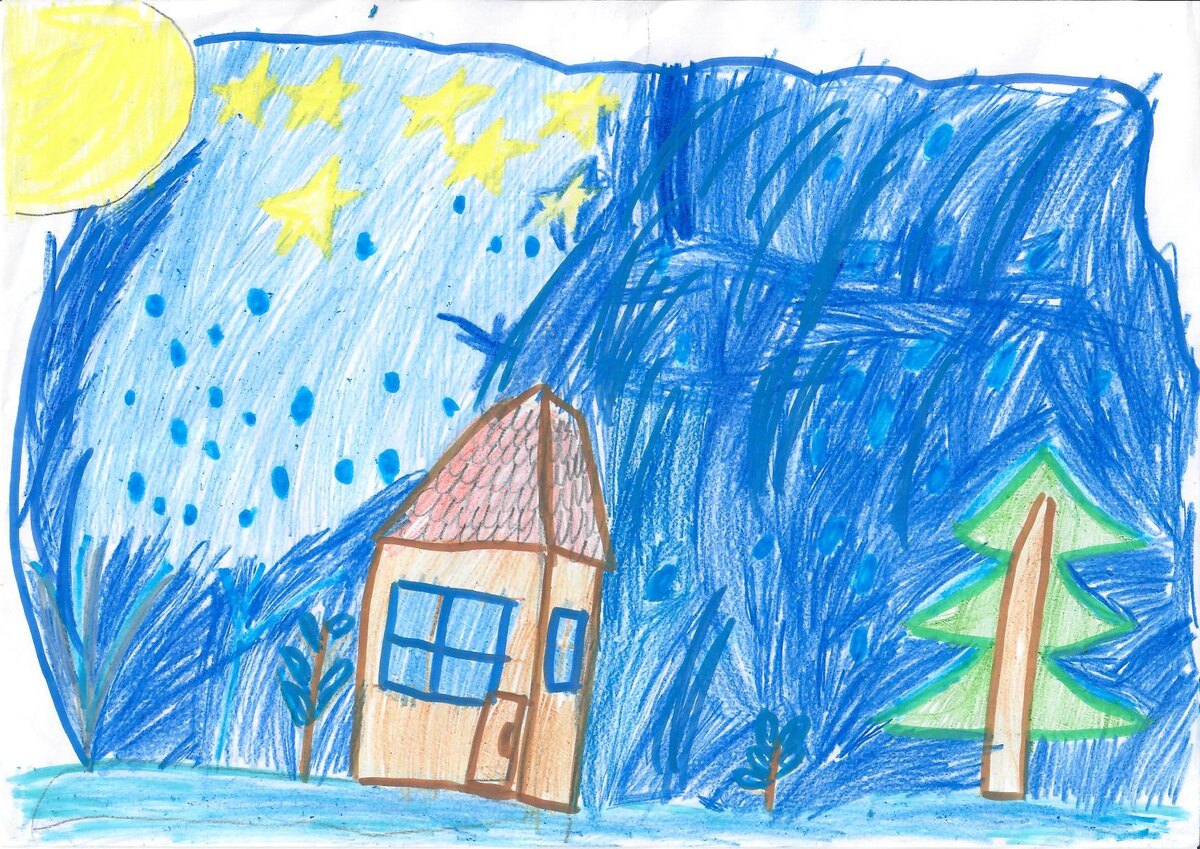 Описание: " Я прочитал стихотворение Николая Рубцова "Звезда полей" и у меня возникли такие чувства - "Холодный зимний вечер. Одинокая луна освещает крыши домов. Я смотрю из окна на звёздное небо. Снег блестит под лунным светом. Ёлки тихо