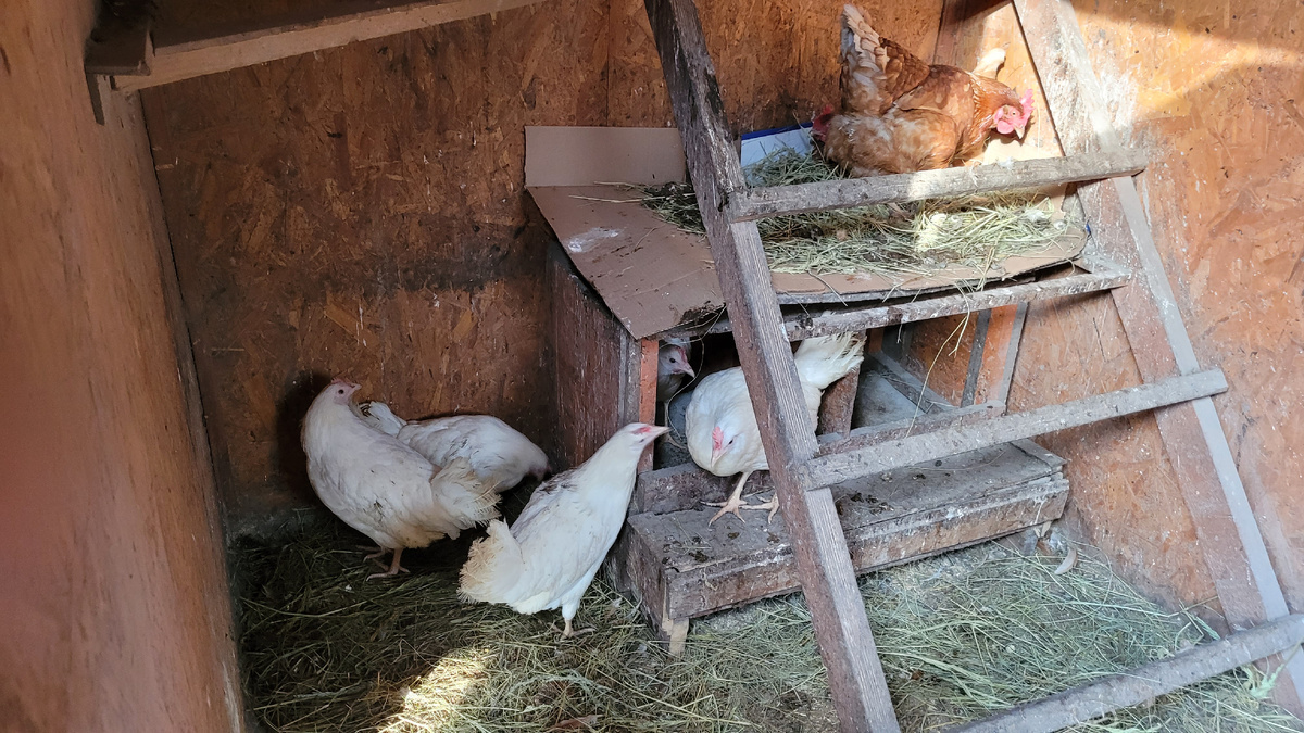 Новые куры забились в угол и в гнездо, а хозяева возмущались.