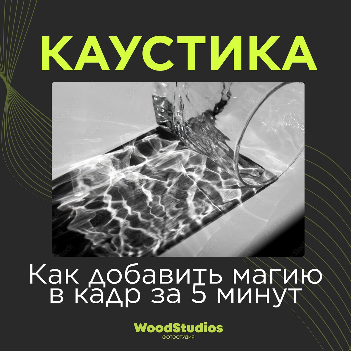 Каустику ты точно видел, даже если не знал, как это называется. Это те самые световые узоры, которые появляются, когда свет проходит через стекло, воду или отражается от блестящих поверхностей. Как создать каустику на съемке 💧 1. Вода + источник света Самый доступный вариант. •направляешь свет через воду •слегка двигаешь воду рукой •получаешь живые световые узоры 👉 Чем больше движение - тем динамичнее эффект 🪞 2. Стекло и отражения Можно использовать: •стеклянные бутылки •бокалы •линзы Свет, проходя через них, ломается и создаёт интересные блики. 🔦 3. DIY-хаки •пакет с водой перед светом •пищевая пленка •стекло с каплями воды •CD-диск (даёт необычные спектральные блики) И самое главное тебе не нужен большой бюджет. Только свет, немного воды и понимание, как это работает.