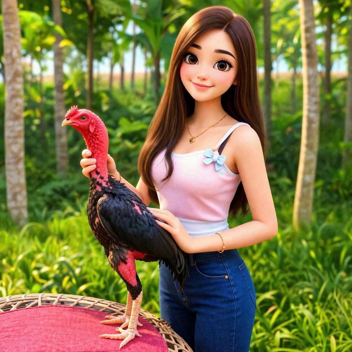 Жили-были когда-то на опушке зелёного леса маленькая курочка. Она была очень добрая, но немного застенчивая. А в лесу жила весёлая и игривая обезьянка. Она любила прыгать с дерева на дерево.