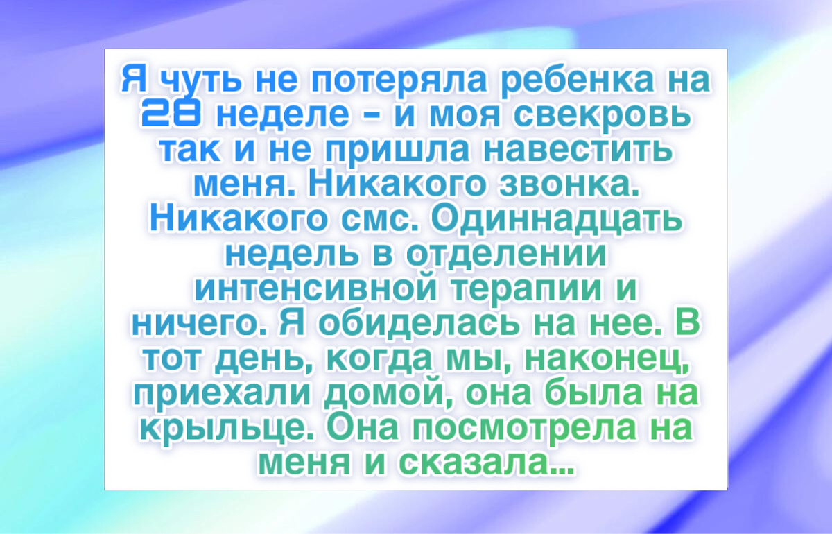 “Свекровь не пришла в больницу, когда мой сын родился преждевременно на двадцать восьмой неделе. Одиннадцать недель в реанимации новорожденных — ни звонка, ни сообщения. Я решила вычеркнуть ее из жизни. Когда мы привезли малыша домой, она сидела на крыльце. Она призналась, что когда-то потеряла ребенка и не смогла переступить порог отделения. Она показала сумки с вязаными одеялами, шапочками и лоскутным покрывалом, которые делала все это время. Она взяла внука на руки и расплакалась. В тот момент я поняла, как сильно ошибалась.”
