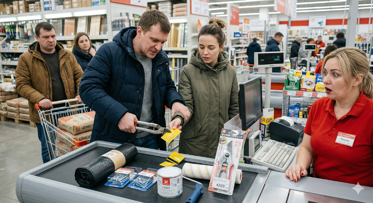 — Транжира! — сказал он. Громко. Так, чтобы услышала кассирша Оксана. Чтобы услышал мужчина с цементом. Чтобы обернулась женщина с ребёнком у соседней кассы. — Ты вообще не понимаешь цену деньгам. Транжира и есть. Никакой финансовой дисциплины.