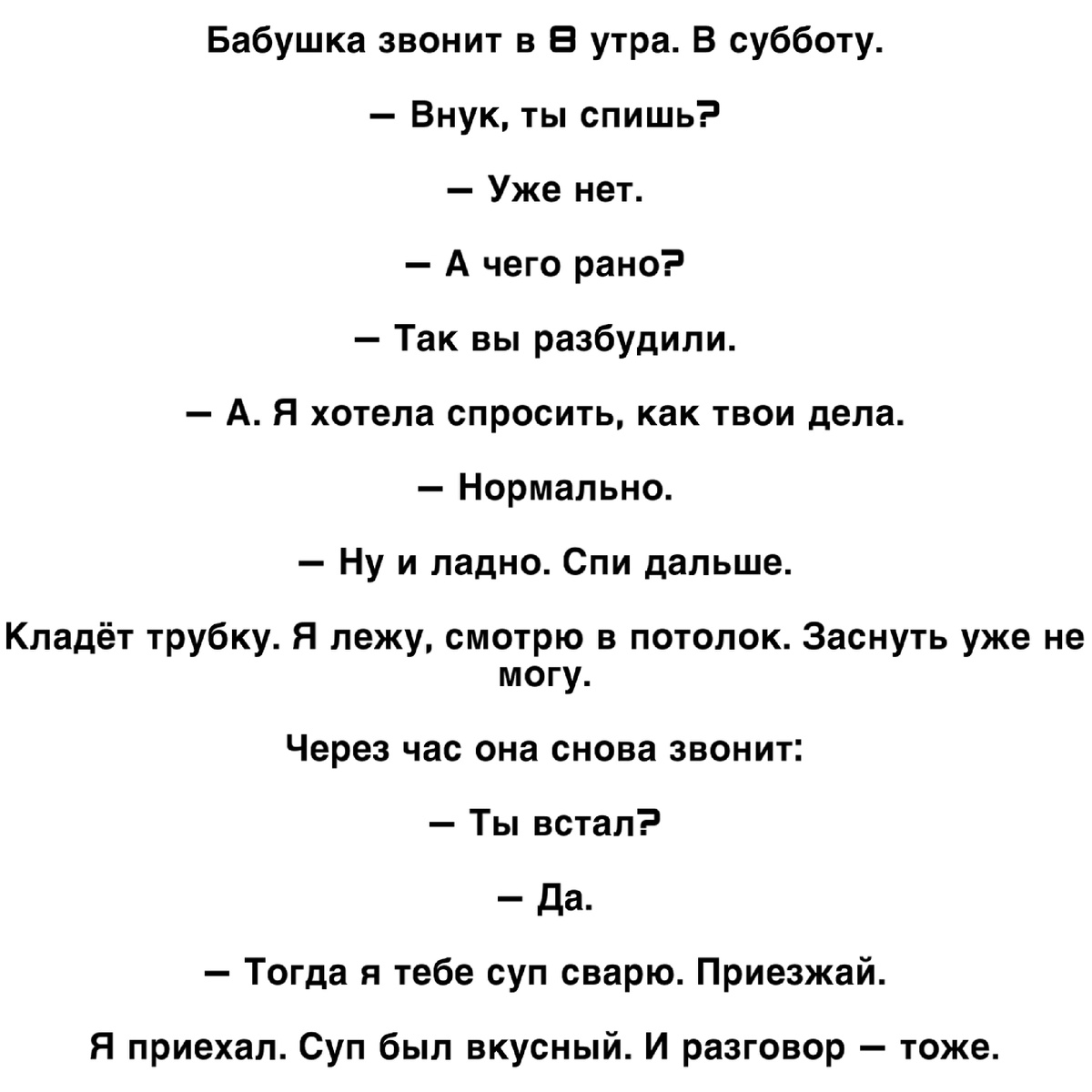 Бабушка звонит в 8 утра. В субботу.