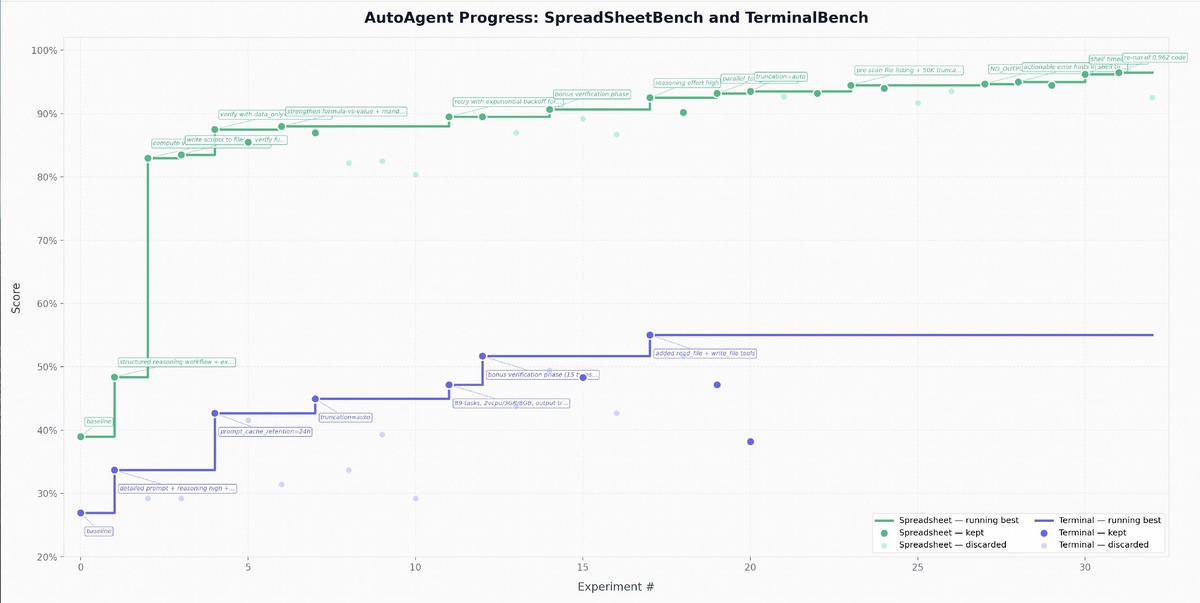 AutoAgent позволяет AI-агентам самостоятельно настраивать и улучшать свои конфигурации, используя мета-агента. Пользователь задает задачи через program.md, а агент автоматически модифицирует свою архитектуру и оценивает результаты. 🚀 Основные моменты: - Автоматическая настройка AI-агентов без прямого редактирования кода. - Использует Markdown для задания задач и инструкций. - Оценка производительности через числовые баллы. - Поддержка Docker для изоляции выполнения. - Совместимость с задачами Harbor. 📌 GitHub: https://github.com/kevinrgu/autoagent #python