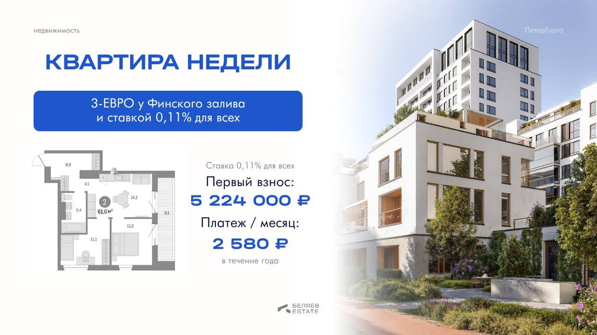 🏆 Квартира недели: евро-трёшка на Васильевском острове у залива — платёж 2 580