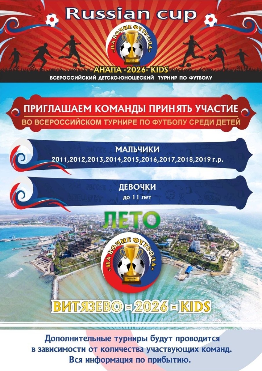 " https://vk.com/russiancupturnir п. Витязево, с 31 мая по 13 июня 2026г. 2011-2019 г.р. Девочки до 11 лет. Будьте с нами на одной волне, НА ВОЛНЕ ФУТБОЛА! RUSSIAN CUP 89184987327 Михаил.