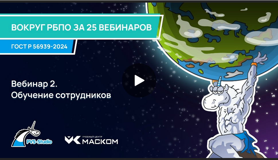 Компания ООО "ПВС" совместно с учебным центром "Маском" провела цикл вебинаров, посвящённых разработке безопасного программного обеспечения (РБПО). Совместно с приглашёнными экспертами различных компаний мы рассмотрели 25 процессов, приведённых в ГОСТ Р 56939—2024. Предлагаем вашему вниманию сегодня вебинар цикла, посвящённый процессу, описанному в разделе 5.2. – "Обучение сотрудников". Слайды. Дополнительные материалы по процессу: Обучение сотрудников. Общее количество вебинаров — 30: каждому из 25 процессов ГОСТа посвящено по одному вебинару и 5 записано дополнительно на смежные темы. Я буду публиковать по два вебинара в неделю, чтобы было время знакомиться с ними. Запись всех вебинаров и подборка дополнительной информации доступна по ссылке: ГОСТ56939.РФ. Поскольку рассматриваем процесс обучения, хочется напомнить, что учебный центр "Маском" предлагает ряд курсов по тематике РБПО. Вы узнаете много полезной информации из вебинаров, которые я здесь публикую. Однако есть смысл подумать
