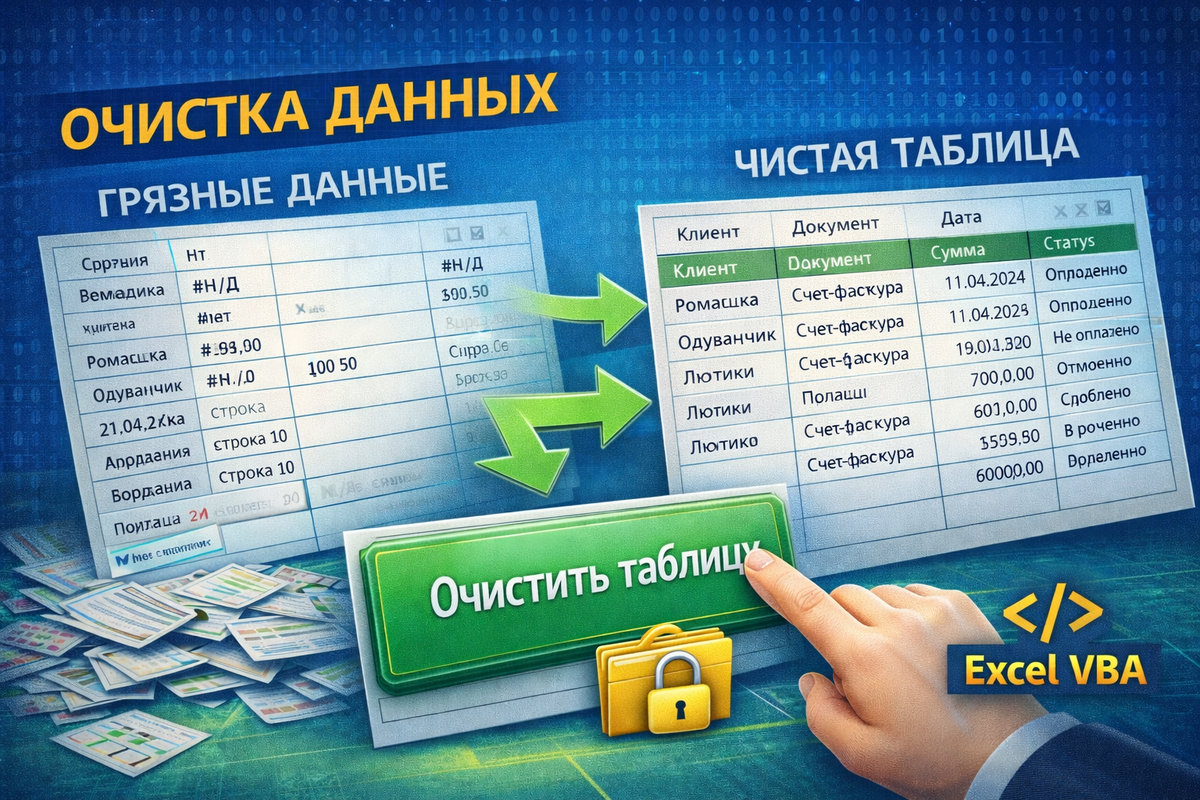 Проблемы в Excel чаще всего начинаются не со сложных задач, а с мелких дефектов в данных. Лишние пробелы, пустые строки, ошибки и неправильные форматы постепенно накапливаются и в какой-то момент начинают ломать всю логику работы.