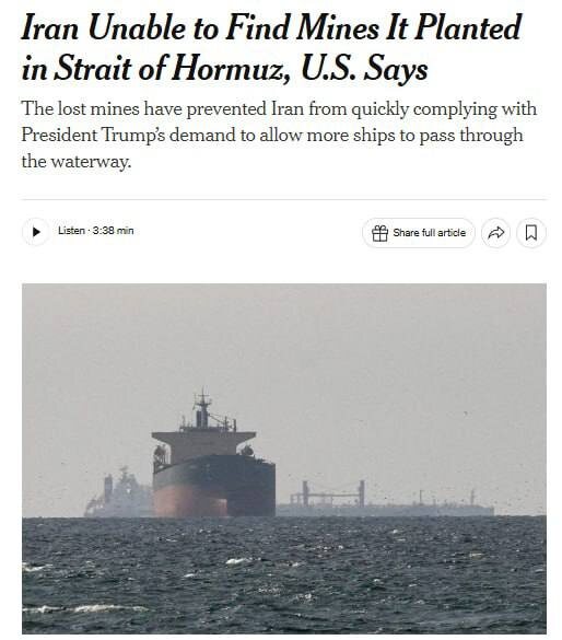 ⚡️Иранцы не смогут открыть Ормузский пролив, потому что сами не знают, где там мины, - The New York Times