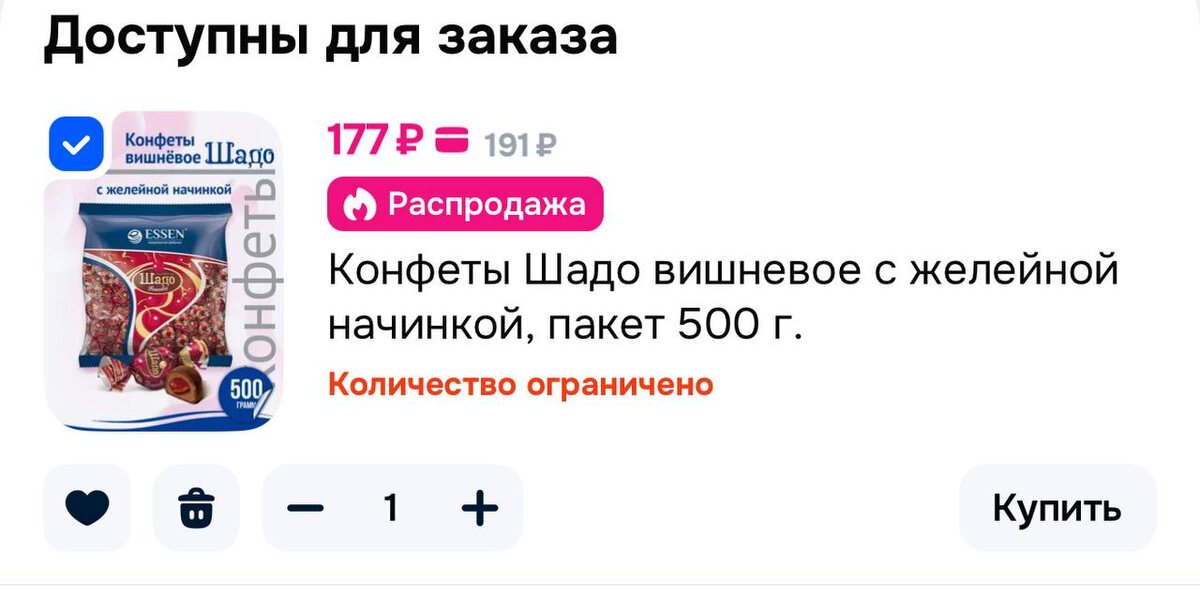 Конфеты Шадо вишневое с желейной начинкой, пакет 500 г.🍬