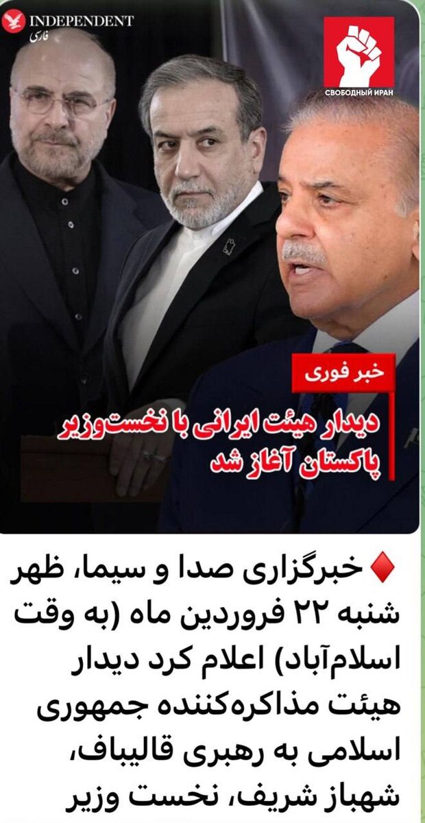 ⚡️ Иранская делегация во главе с Мохаммадом Багером Галибафом сейчас встречается с Шахбазом Шарифом. По графику сегодня же могут пройти и переговоры с американцами, но в Тегеране подчёркивают: окончательного зелёного света ещё нет. Tasnim пишет, что если диалог всё же стартует, он пока рассчитан только на один день. Подпишитесь на канал
