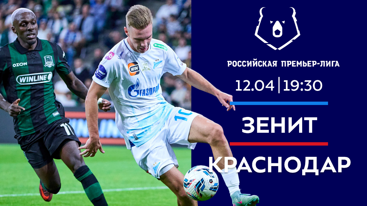 12 апреля на стадионе «Газпром Арена» в Санкт-Петербурге в рамках 24-го тура Российской Премьер-Лиги сойдутся два главных претендента на чемпионский титул — местный «Зенит» и действующий обладатель трофея «Краснодар». Стартовый свисток в этом поистине золотом матче прозвучит ровно в 19:30 по московскому времени. Посмотреть его можно на телеканале «Матч ТВ», а также через Okko или Кинопоиск, при наличии платных подписок.