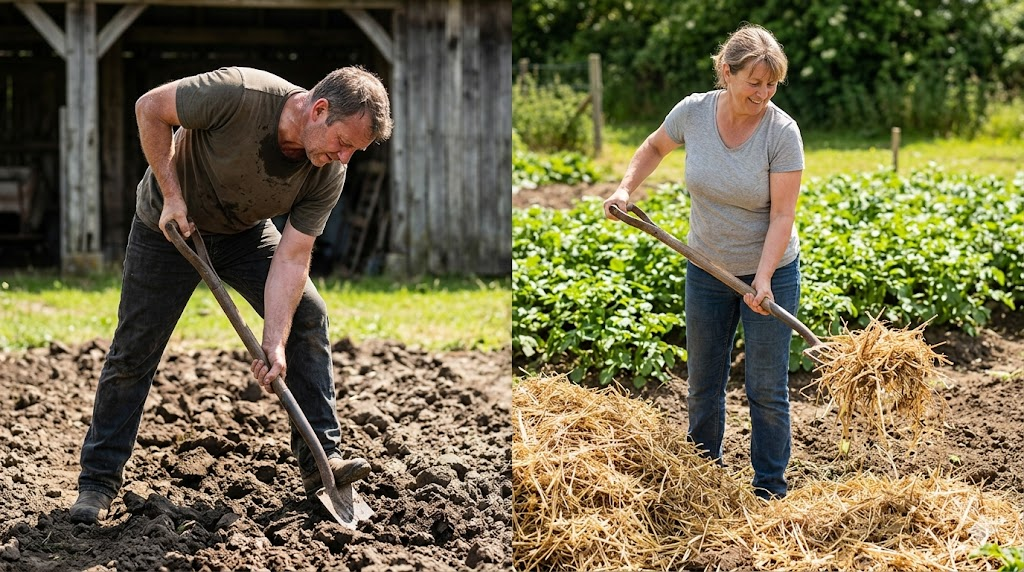 Перекопка картофельного поля — самая тяжёлая работа на участке. Лопата, спина, пот, несколько выходных. А результат? Крупная картошка? Не всегда. Три года назад перестал перекапывать вообще. Вместо этого — солома,