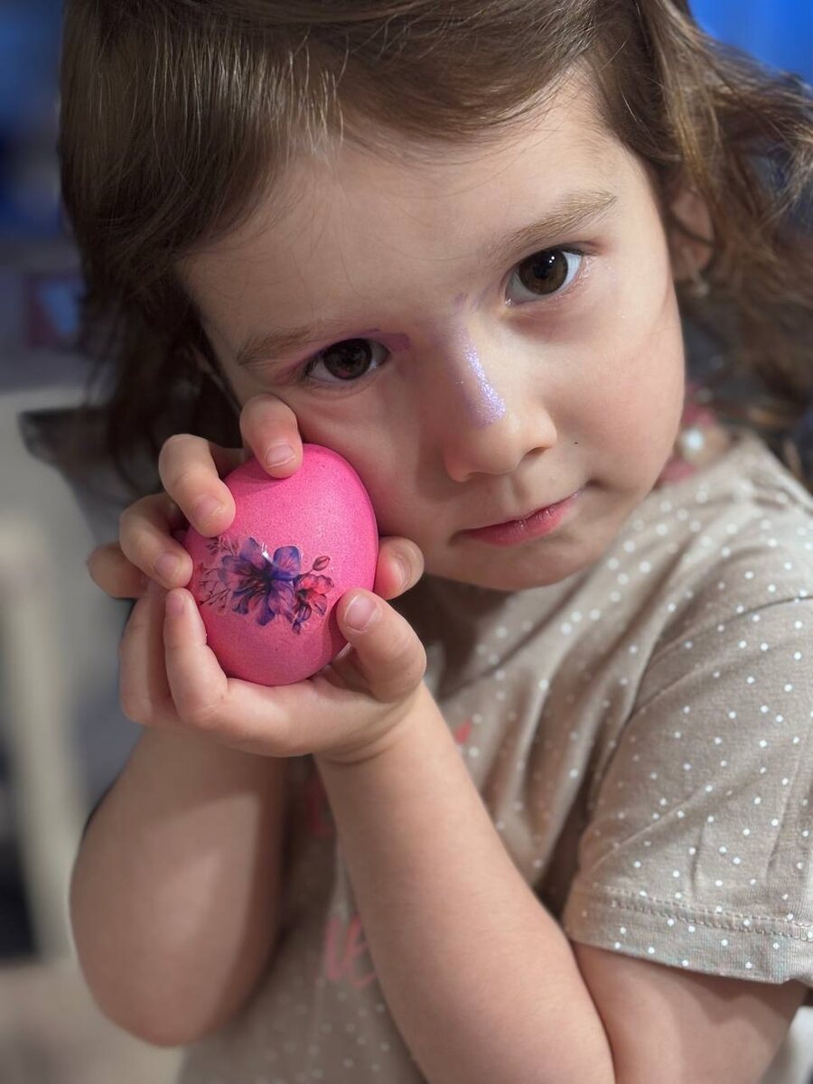🤭 С прошлого года у меня остались натуральные красители. Эмилия естественно выбрала розовый 💖. Но в этот раз я попробовала покрасить яйца с помощью корицы. Если подержать подольше, то получится коричневый оттенок. А вы празднуете Пасху? #doublemama #немемнаяжизнь #М_среда