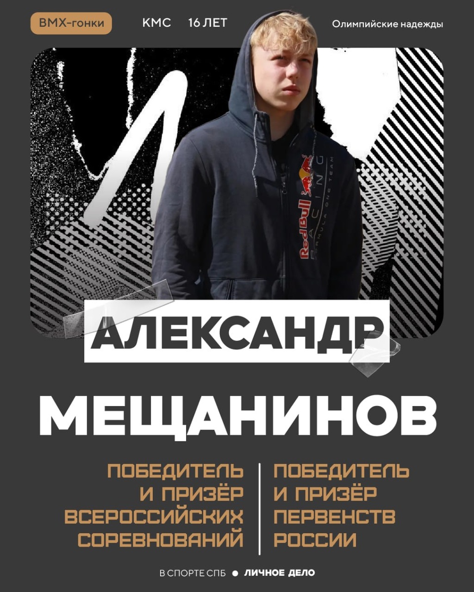 📓 Сегодняшним гостем нашей рубрики стал молодой BMX-гонщик из «Олимпийских надеждах», который завтра отметит свое 16-летие! 🥳 📖 Открываем личное дело Александра Мещанинова! 🇷🇺 MAX / 😄VK