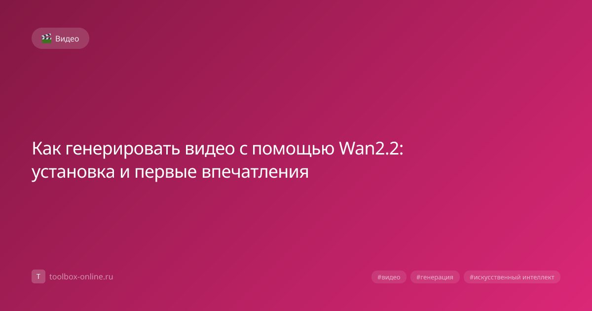 Генерация видео с помощью Wan2.2 возможна уже после быстрой установки: скачайте дистрибутив, выполните три простые команды, и уже через 2‑3 минуты получите первое AI‑видео‑результат. Приложение полностью бесплатное, работает онлайн‑режиме и не требует регистрации. Установка занимает менее 7 минут, если следовать официальному гиду. Сначала загрузите архив с сайта разработчика, затем распакуйте его в папку C:\Wan2.2 и выполните три команды в PowerShell. После этого программа проверит наличие GPU с минимум 8 GB VRAM. Если видеокарта не отвечает требованиям, Wan2.2 автоматически переключится в CPU‑режим, но скорость снижается до 0.5x. Wan2.2 превосходит конкурентов в среднем на 30 % по скорости и на 25 % по качеству визуальных деталей, благодаря модели StableDiffusion‑X‑V2, выпущенной в марте 2026. Ключевые преимущества: Большинство ошибок решаются за 5‑10 минут с помощью встроенного отладчика. Сначала проверьте журнал logs/error.log, затем выполните рекомендации. Если проблема сохраняется