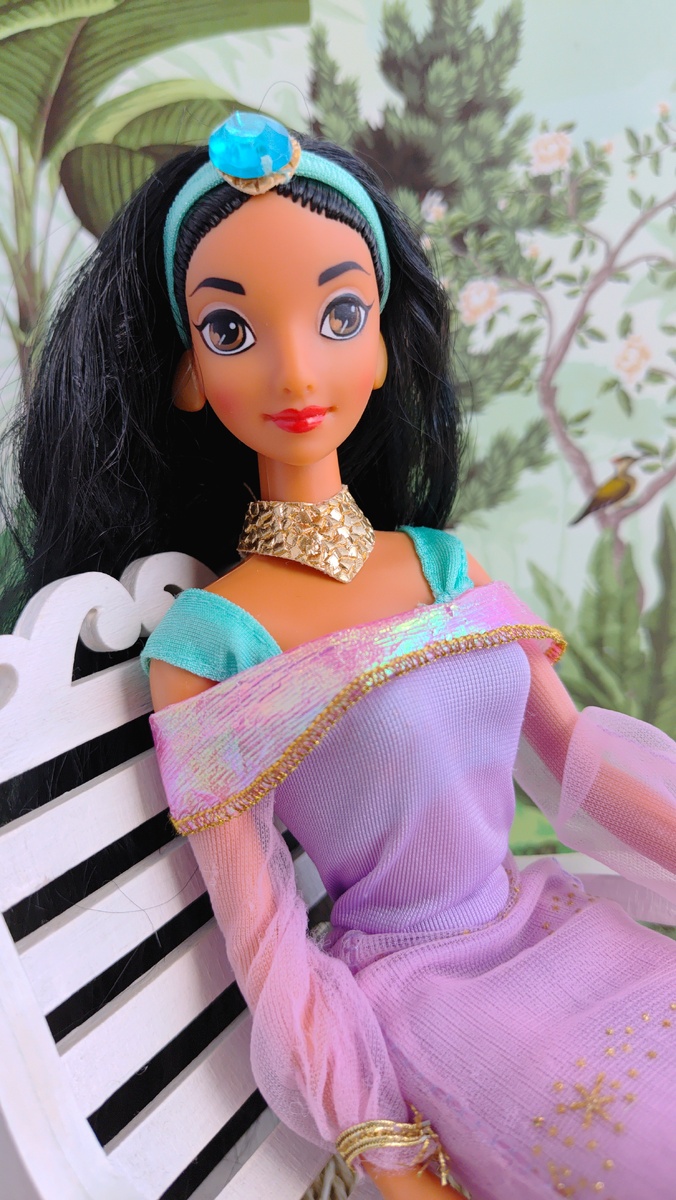 С продажей этой куколки я тянула как могла. И сфотографировала уже, и описание подготовила... Но всё не делаю и не делаю объявление и статью про неё не пишу и не пишу. Очень уж она мне самой нравится. Я задумалась: может, мне нужна эта арабская красавица? Несколько раз себе повторила, что оставляю себе Покахонтас, а с Жасмин прощаюсь. И... беру в руки... и опять не то чтобы сомнения, а мысль: "сделаю попозже". Ну вот что это? Я понимаю, что кукла энергетически не моя. Но время тянула и на продажу долго не выставляла. А ведь тем временем, как только я почувствовала, что Барби с барашком попросилась на переезд, я её сразу же мысленно опустила. Сейчас решила взять себя в руки: всё, Жасмин нужен другой дом. У меня много кукол 90-х, мне достаточно ))) И я не поклонница Принцесс. Не будь жадиной, Маша. Эта кукла появилась у меня не в 1992-м, а около пяти лет назад – в составе лота из США. Когда я её увидела, сразу решила оставить себе. Она стояла на полке в коллекции, и всё это время мне н