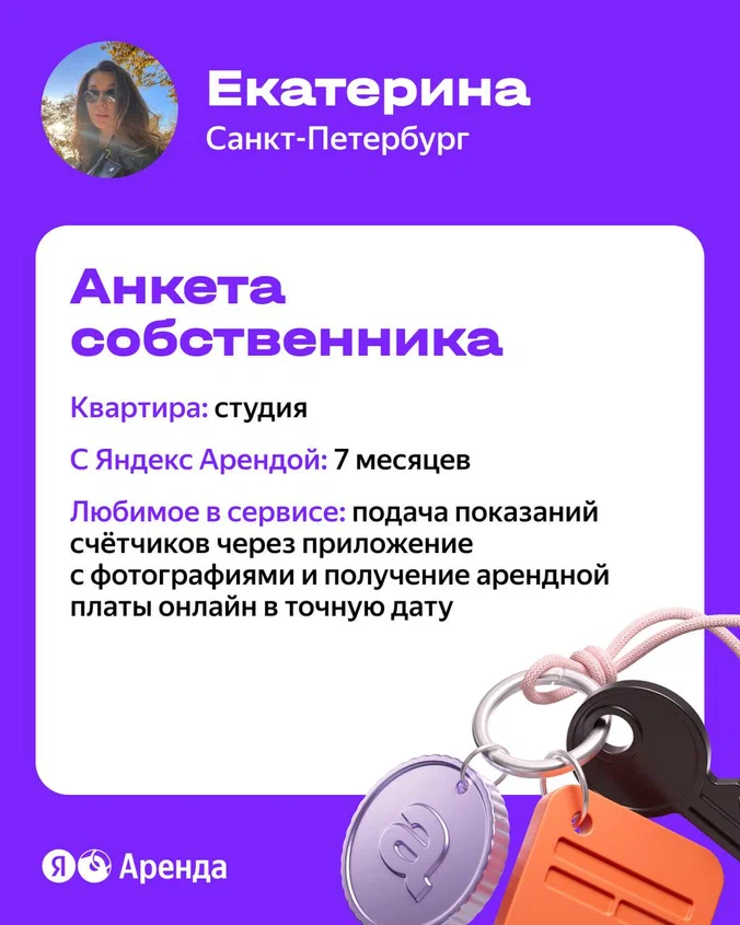 Несколько лет назад Екатерина купила себе студию в Петербурге, сделала ремонт и… переехала по работе в Москву. Сначала девушке не хотелось её сдавать – были опасения по поводу дорогой бытовой техники и отделки. Так, шло время, коммуналка продолжала начисляться, а квартира простаивала. Что случилось дальше – читайте в истории ниже.Поиск онлайн-сервиса Понимая, что из другого города мне будет непросто следить за состоянием квартиры, я хотела найти онлайн-сервис, который бы мне помог решить мои арендные вопросы удалённо. Так я узнала про Яндекс Аренду. Мне понравилось, что в сервисе есть страховка и финансовая защита – ремонт у меня дорогой, и, в случае чего, депозит вряд ли бы покрыл потенциальный ущерб. На момент сдачи меня не было в Петербурге, поэтому я оставила заявку на сайте, согласовала с менеджером Яндекс Аренды дату визита в квартиру и попросила маму приехать с доверенностью. Мама передала ему ключи, он сделал фото, 3D-тур, а я заполнила электронную опись, прикрепив фотографии м