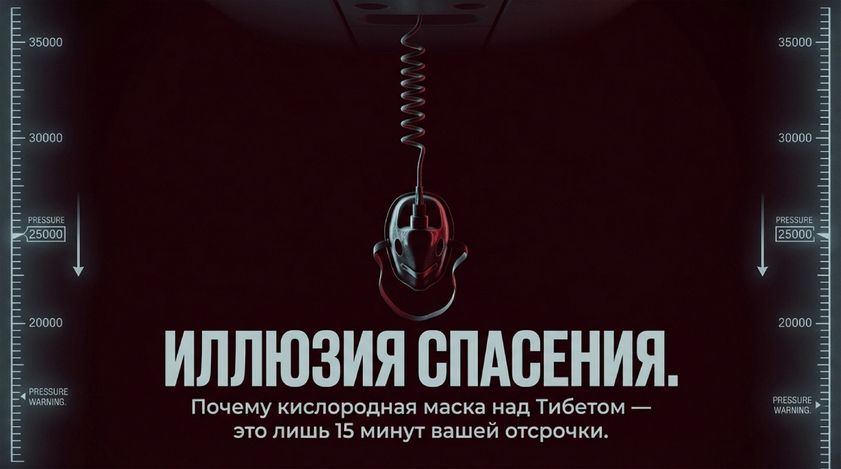 Вы садитесь в кресло удобного лайнера. Полет обещает быть спокойным и безопасным. Но если под крылом расстилается Тибет, эта безопасность превращается в иллюзию. Вам обещают спасение, которое физически невозможно в координатах «Крыши мира». Над вашей головой нет громоздких баллонов со сжатым газом. Там спрятаны небольшие стальные канистры. Химическая свеча. Хлорат натрия в реакции с железным порошком. Стоит вам потянуть маску на себя, и подпружиненный боек ударяет по капсюлю. Начинается необратимая реакция. Она вырабатывает пригодный для дыхания кислород ровно пятнадцать минут. Ее нельзя выключить, перекрыть или отложить на потом. Факт. Над равнинной Европой или бескрайним океаном пятнадцать минут спасают жизнь. За это время опытный экипаж опускает машину на три тысячи метров. На этой высоте воздух плотный, и можно дышать без маски. Протокол работает идеально. Тибет диктует авиации другие правила. Средняя высота этого нагорья: четыре тысячи пятьсот метров. Пики пробивают восемь тысяч.