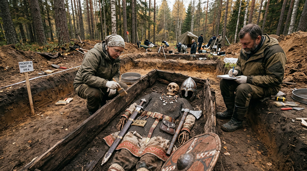 В Приозерском районе Ленинградской области археологи Кунсткамеры нашли могилу знатного карельского дружинника, служившего новгородскому князю. Уникальность находке придает редкостный бронзовый наперсный крест, аналоги которому встречаются только на острове Готланд. Приозерский район, 11 апреля 2026 года. Сотрудники Музея антропологии и этнографии имени Петра Великого Российской академии наук (Кунсткамера) обнаружили в Севастьяновском поселении под Приозерском богатое захоронение карельского воина, относящееся к XIII веку . Раскопки ведутся на могильнике периода активной христианизации карельских земель. Глава администрации Приозерского района Александр Соклаков, посетивший археологов 4 апреля, опубликовал фотографии с места работ на своей странице «ВКонтакте». Погребальный инвентарь свидетельствует о высоком статусе захороненного. По предварительным данным, это был богатый дружинник, состоявший на службе у новгородского князя, возможно — член военной элиты. В составе находок: Особое вн