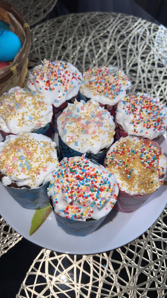 - Оставьте куличи при комнатной температуре на 1–2 часа, чтобы глазурь подсохла.