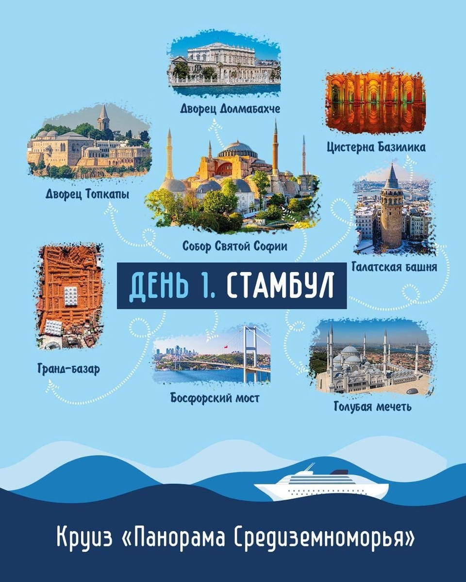 » Это один из любимейших круизерами маршрутов. И мы решили рассказать о том, что увидят туристы по пути его следования, в доступном формате слайдов. А вот причины, почему этот круиз — фаворит многих: 🔸Прямой перелет в Стамбул 🔸Русскоязычный сервис 🔸Хорошая продолжительность — 9 ночей, чтобы успеть в полной мере насладиться и городами, и всем, что готов предложить вам лайнер 🔸Самые красивые локации Турции, Италии и Греции 🔸Можно совместить с отдыхом в Стамбуле 🔸Современный лайнер MSC Fantasia с большим количеством развлечений на борту 📍Панорама Средиземноморья Стамбул – Бари – Триест – Катаколон – Пирей/Афины – Кушадасы – о. Корфу 👌Русскоязычный сервис 📆 08.05.2026 – 20.09.2026 на 9 ночей 💰 от 127 750 ₽*/чел. С оформлением визы помогаем 🤝🏻 *Стоимость без перелета, с питанием полный пансион и включенными сервисным и портовым сборами. Актуальна на момент публикации.