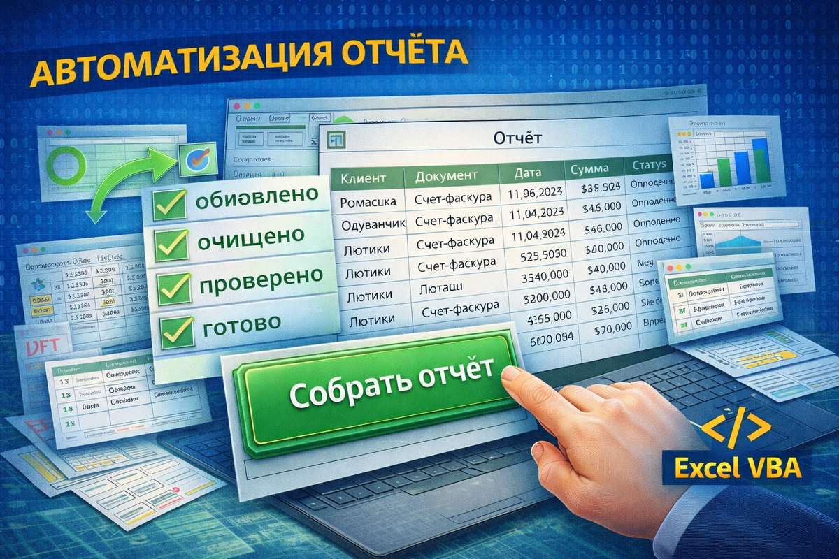 Именно поэтому полная автоматизация месячного отчёта — это не “красивый финал серии” и не эффектная игрушка для тех, кто любит VBA. Это очень практичная вещь. Потому что в реальной жизни месяц заканчивается не поэзией, а отчётом. И чем меньше в этом отчёте ручной рутины, тем больше в нём точности, скорости и нормального человеческого спокойствия.