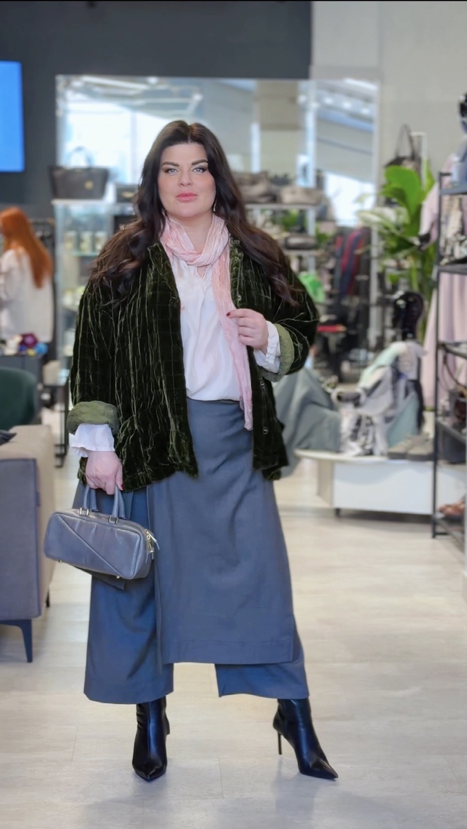 Оливковый и серый — одно из самых выверенных сочетаний сезона. Природный оливковый оттенок добавляет глубину и мягкость, а серый — от светлого до насыщенного графитового — собирает образ и делает его более структурным. Такой дуэт выглядит спокойно, современно и легко адаптируется в повседневный гардероб. Это выбор в пользу уверенности без лишней демонстративности.