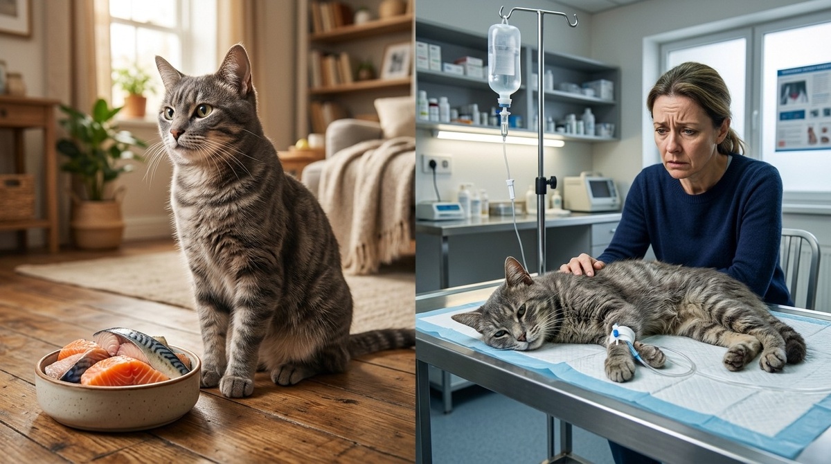 Я думала, что балую своих котов. Рыба же полезная. Омега-кислоты, фосфор, белок. Коты любят рыбу. Что может быть лучше? Я давала рыбу несколько раз в неделю. Иногда чаще. Мурка обожала треску, Рыжик сходил с ума по минтаю, а Буся готова была душу продать за кусочек скумбрии. Я покупала свежую рыбу на рынке, варила, чистила от костей и кормила своих любимцев. Они мурлыкали, я радовалась. А потом начались проблемы. Всё началось с Барсика. Мой старший кот, 12 лет, всегда был здоров как бык. А тут стал вялым. Шерсть потускнела. Он перестал прыгать на свой любимый подоконник. А потом я заметила кровь в лотке. Ветеринар посмотрела на меня усталым взглядом. Спросила: «Чем кормите?» Я перечислила. Дорогой сухой корм, влажный корм, иногда рыба. «Как часто рыба?» — «Ну, несколько раз в неделю». Врач закрыла глаза и сказала: «Вы убиваете своего кота». Я не поверила. Рыба? Полезная рыба? Убивает? Ветеринар объяснила мне всё по порядку. И я поняла, что совершала ошибку годами. Первое. Тиаминаза. В