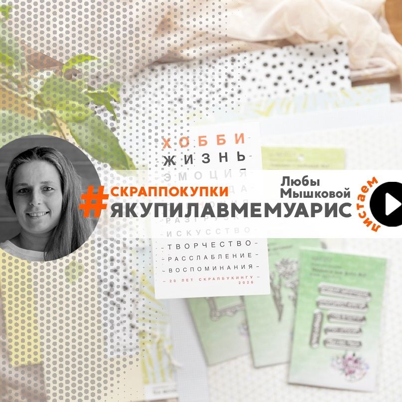 Всем привет! Наконец и я могу впервые написать в рубрике #якупилавмемуарис и похвастаться своими покупками. Ведь весна - самое время приобрести что-то новенькое и очень нужное. Очень рада, что успела ухватить открытку окулиста " к 20-летию скрапбукингу". Пожалуй, начну с бумажной части. Такая солнечная компания из листов Тимуд и кардстока. Закупилась зелеными конвертиками от АгиАрт. Сразу протестировала и ножи, и кардсток. Посмотрите, какая красота из набора «Надписи для фото №2». Пока почтовая тема в тренде, взяла вот такой нужный штамп от Агиарт. Постоянно в моих покупках присутствует шнур с бантиками. Ну милый же, правда?! И, не обошла стороной новинку сезона - самоклеящуюся пленку! Красота получается! И уже в деле купленные материалы. Сложилась лаконичная открытка. Вдохновляйтесь, обновляйтесь этой весной! • Всегда с лёгкой сумашедшинкой, Люба •