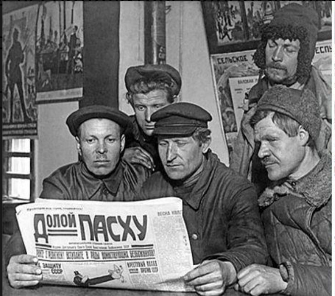 В 1920–30-е годы антирелигиозная политика становится особенно активной. Союз воинствующих безбожниковпроводит масштабные кампании: лекции, выставки, публикации, карикатуры. В эти годы даже предпринимались попытки создать альтернативу Пасхе — так называемые «красные пасхи», где вместо церковного смысла предлагалась идеологическая программа с шествиями, агитацией и высмеиванием религии.