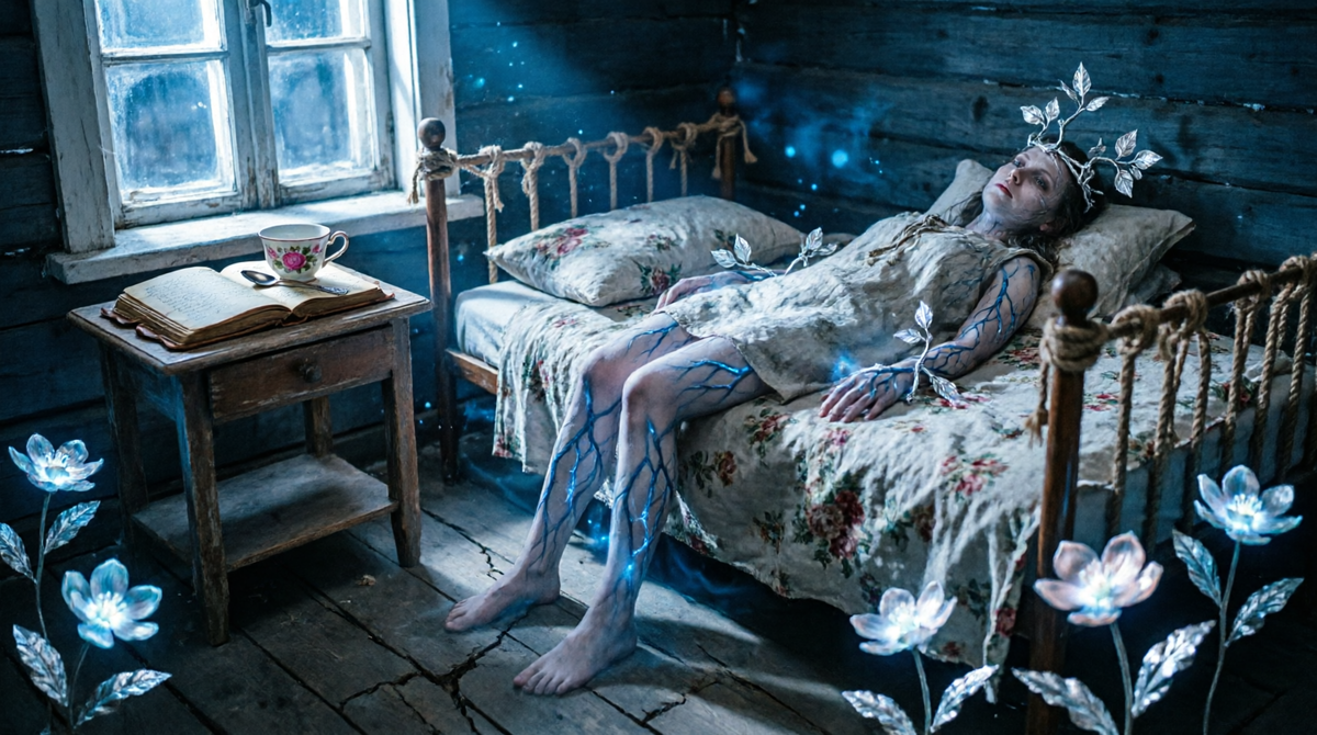 Она провалилась в сон, но это был не сон. Это было погружение. Она оказалась в сознании своей сестры. Она увидела мир глазами Кати — тёмный, тесный, где каждое движение причиняет боль, где мысли спутаны, как колючая проволока. И вдруг этот мир начал наполняться светом. Она почувствовала, как «лезвие» внутри неё превращается в корни. Корни потянулись из её тела, проросли сквозь матрас, сквозь пол, сквозь землю и соединились с чем-то огромным, что спало под домом.