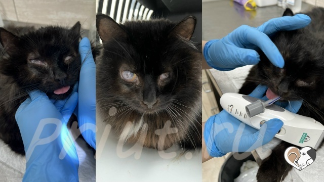 Слепыша принесла к нам женщина, которая подкармливает бездомных кошек в подвале своего дома. Она знает каждую подопечную кошку и заботится о них в меру своих возможностей, обеспечивая им еду и минимальный ветеринарный уход. Слепыш стал для неё неожиданностью – этот кот раньше не приходил и вёл себя странно – натыкался на стены, не с первого раза находил миску. Отловив кота, стала понятна причина такого поведения – у кота были поражены глаза и оставлять его в подвале было нельзя – слепое животное не жилец на улице. Во время осмотра кота нашими врачами выявили, что у Слепыша проникающая травма правого глаза. Травма не свежая и воспаление уже перешло на все оболочки глаза, из-за чего развился панофтальмит. Левый глаз также был когда-то травмирован или перенес вирусное заболевание и на момент осмотра уже не нес свою функцию, а был «воротами» для инфекции. К сожалению, по результатам осмотра, зрение вернуть Слепышу уже невозможно. Но необходимо было удалить поражённые глаза, чтобы исключить
