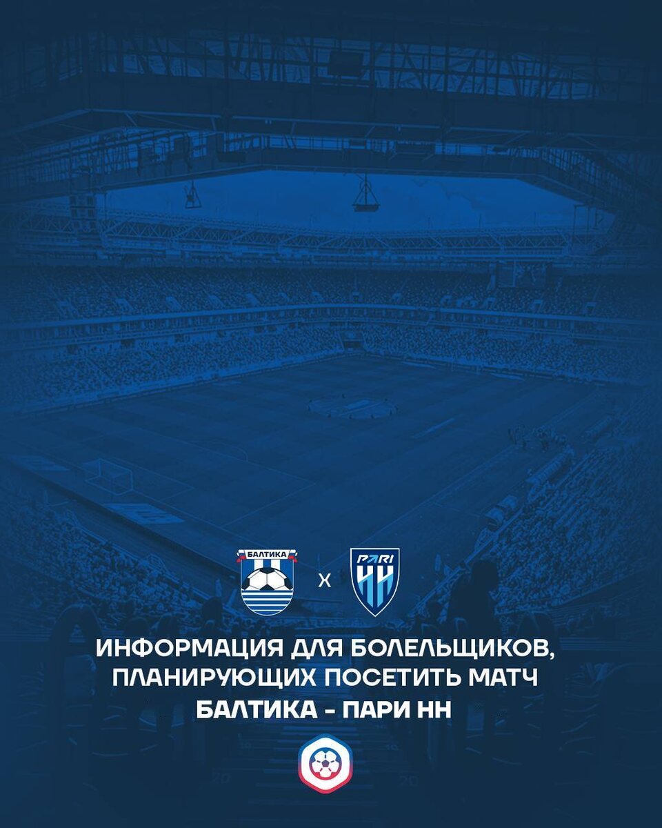 ❗️ Во избежание сбоев в работе сервиса «Госуслуги. Карта болельщика» или слабого сигнала у входов «Ростех Арены» футбольный клуб «Балтика» рекомендует: ➡️ заблаговременно сохранить PDF-файлы с QR-кодом для прохода на стадион; ➡️ сделать скриншот соответствующего раздела в приложении «Госуслуги. Карта болельщика»; ➡️ распечатать билет с QR-кодом для прохода перед выходом из дома. Напоминаем также, что в дни матчей рядом с РОСТЕХ АРЕНОЙ работают выездные пункты МФЦ, где вы можете оформить карту болельщика и затем приобрести билет в кассах стадиона. Время работы: с 12:00 и до конца первого тайма. При возникновении проблем вы можете обратиться в Центры поддержки болельщиков. В день матча «Балтика» — «Пари НН» они работают с 14:30. ❗️ Мы ждём вас уже с 17:00! Приходите заранее, чтобы избежать очередей и поучаствовать в предматчевых активностях! До встречи на стадионе! 🎟️ БИЛЕТЫ