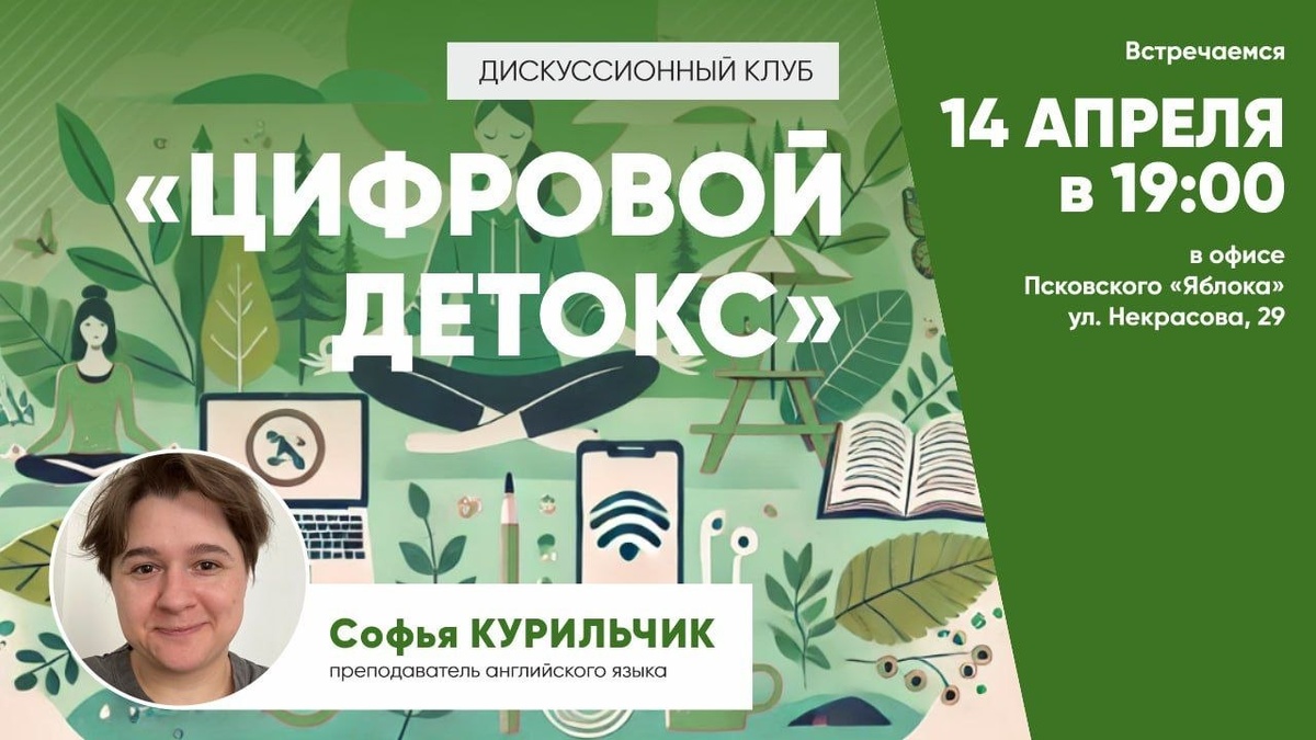 ☮️ На второй встрече дискуссионного клуба Псковского «Яблока» обсудим цифровой детокс