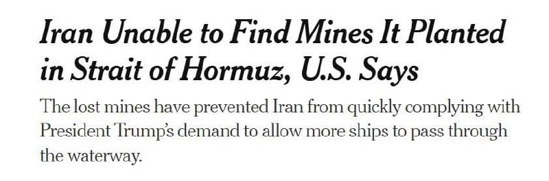 Об этом пишет The New York Times, со ссылкой на американских чиновников. По их словам, Тегеран заминировал пролив слишком хаотично, и на данный момент попросту потерял часть дрейфующих мин, которые могли сместится после установки. Чиновники считают, что это главная причина по которой Иран не может оперативно восстановить проход судов через пролив.