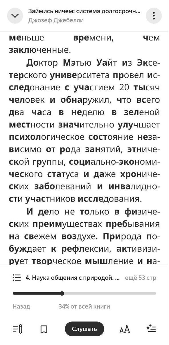 Это специальный режим верстки: первые символы в словах выделяются жирным и такая уловка может помочь удерживать внимание на тексте и погружаться в сюжет. Обновление появилось в настройке выбора шрифтов и применяется ко всем книгам. Когда хочется ни на что не отвлекаться 📚✨