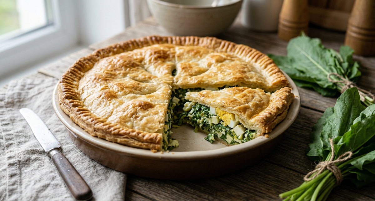 Варёные яйца в этом пироге играют роль связующего звена. Щавель — это кислота и свежесть. Брынза — соль и молочность. А яйцо добавляет мягкость, насыщенность, некую «округлость» вкуса. Без него начинка была бы слишком резкой, дерзкой. С яйцом всё смягчается и приходит в гармонию.