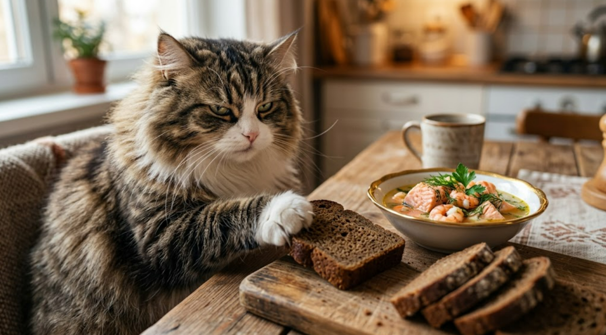 Звучит все это мило и забавно, но тут кроется реальная опасность. Я часто вижу, как люди в соцсетях умиляются тому, что их питомцы едят странные продукты. Это может быть опасно. У кошек совершенно другая печень. Лук, чеснок, виноград, изюм, любой шоколад - это тяжелейшие токсины, которые разрушают их организм и бьют по почкам. Даже тот самый черный хлеб, если кот съест его слишком много, вызовет серьезные проблемы с кишечником. Если он игнорирует полезный корм, придется набраться терпения. Я подмешивала новый корм в старый буквально по несколько гранул в день. Это требует времени, но иначе никак. А со столом все еще проще - нужно просто прятать всё съедобное в шкаф и холодильник. Если уж очень хочется побаловать зверя, лучше дать ему специальное лакомство, но строго в его миске.