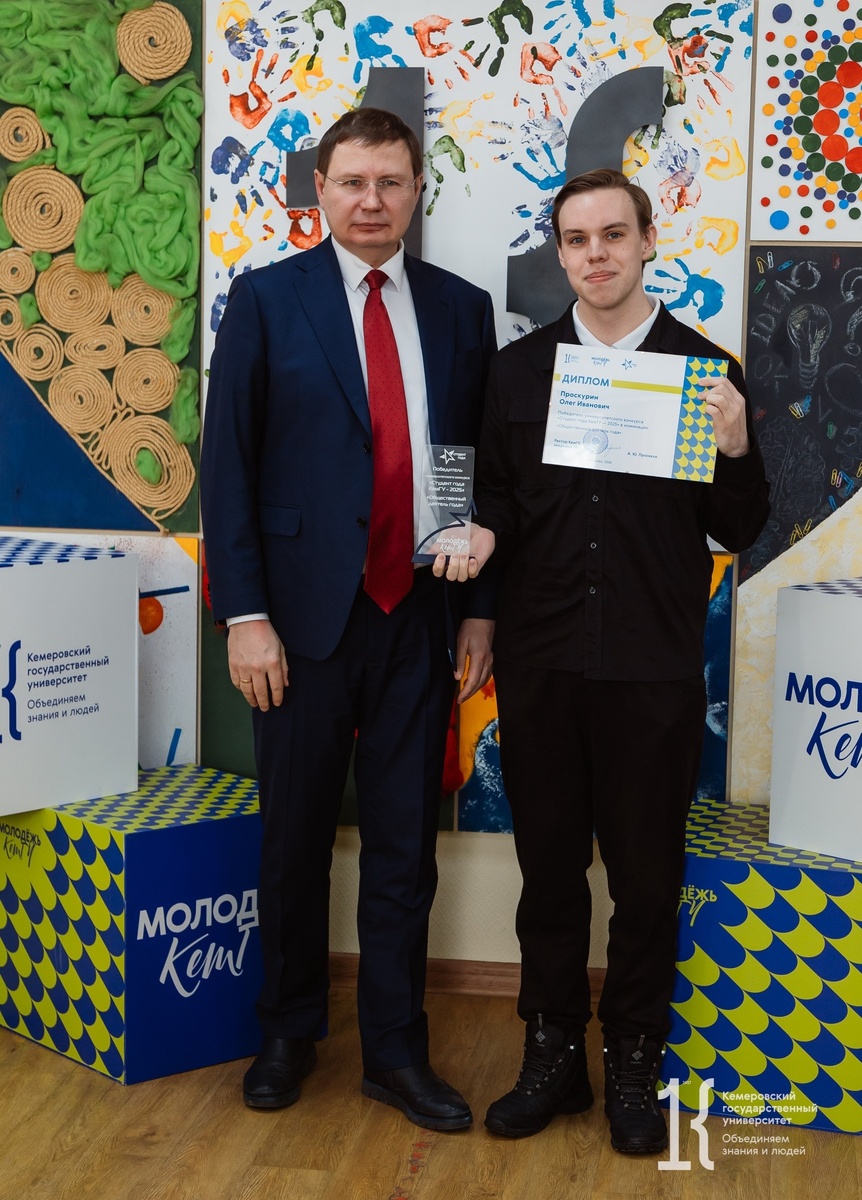 Победителем конкурса #СтудентГодаКемГУ в номинации «Общественный деятель года» стал студент Юридического института Олег Проскурин. «Об этом конкурсе я знаю ещё с первого курса благодаря заместителю директора по социальной и воспитательной работе Юридического института Надежде Викторовне Козловой, которая два года мне говорила: надо пробовать! Я считал, что ещё рано и у меня нет достижений, которые позволили бы мне выделиться на фоне других. Но в этом году, когда я посмотрел на весь свой опыт и деятельность, то понял, что пора: настало то самое время». «Я бы сказал, что КемГУ стал для меня отправной точкой. До поступления многое казалось неопределённым, а планы — размытыми. В Юридическом институте появилось больше ясности: стало понятнее, куда двигаться и чего я хочу. Институт задал направление, а КемГУ дал возможности для развития». «Моё студенчество в КемГУ — как целый большой мир: интересный, разнообразный и полный новых впечатлений. Каждый день приносит что-то новое. КемГУ стал для